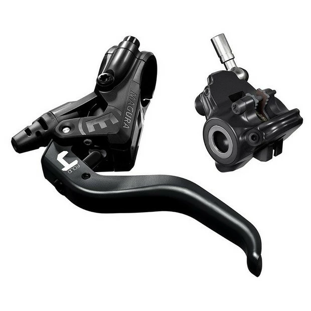 Le frein à disque hydraulique Magura MT4 FM a été spécialement conçu pour la toute dernière génération de cadres de Cross-Country et de Marathon. Les deux pistons du MT4 offrent rigidité et progressivité tandis que la poignée Carbotecture légère garantit un poids inférieur à 230 g. Ce frein polyvalent peut être utilisé sur route comme sur sentier. La poignée se compose d’un polymère avec fibres de carbone enrobées rendant la poignée extrêmement solide malgré son faible poids. Quant à l’étrier 2 pistons, il est conçu comme une variante compact pour les logements Flatmount.